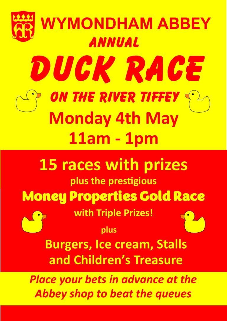Wymondham Abbey Duck Race 4 April 2026 Welcome to the Annual Wymondham Abbey Duck Race! Come join us at Becketswell Meadow for a quacking good time! A Bank Holiday Monday Funday for all Read More »